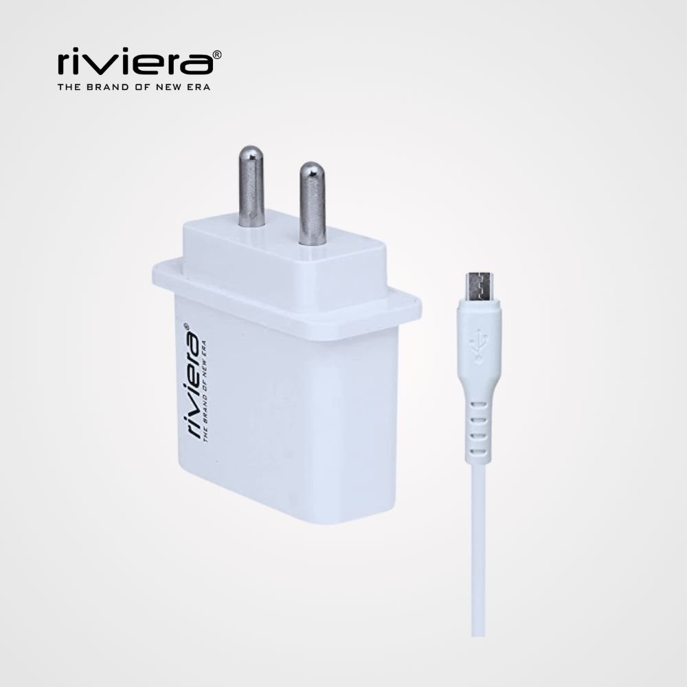 riviera-2amp-power-wall-charger-supergadget.inRiviera Power 12W Fast Mobile Charger – BIS Approved USB Wall Adapter for Smartphones
