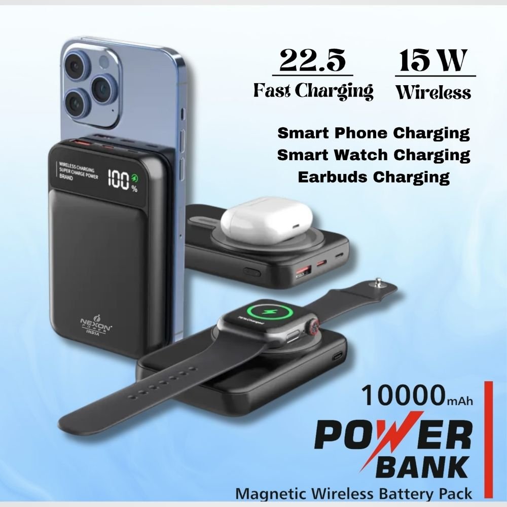 Keep your devices powered anytime, anywhere with the iNexon 10000 mAh MagSafe Wireless Power Bank. Featuring seamless MagSafe compatibility, lightning-fast charging, and a compact, travel-friendly design, this power bank is the perfect companion for iPhone, iWatch & AirPods users who demand performance and convenience in one sleek device.